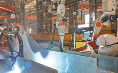 张靖皋长江大桥项目,机器人辅助钢塔焊接。许丛军 摄(影像中国)