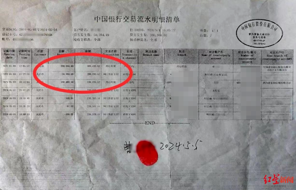 5月4日,汇款账户名为“廖某某”的20万元转入曹女士账户。因银行卡每日限额,为了不让“男友”着急,曹女士找到多名亲友“周转资金”购买黄金。她的举动引起儿媳的警觉,随即报警。