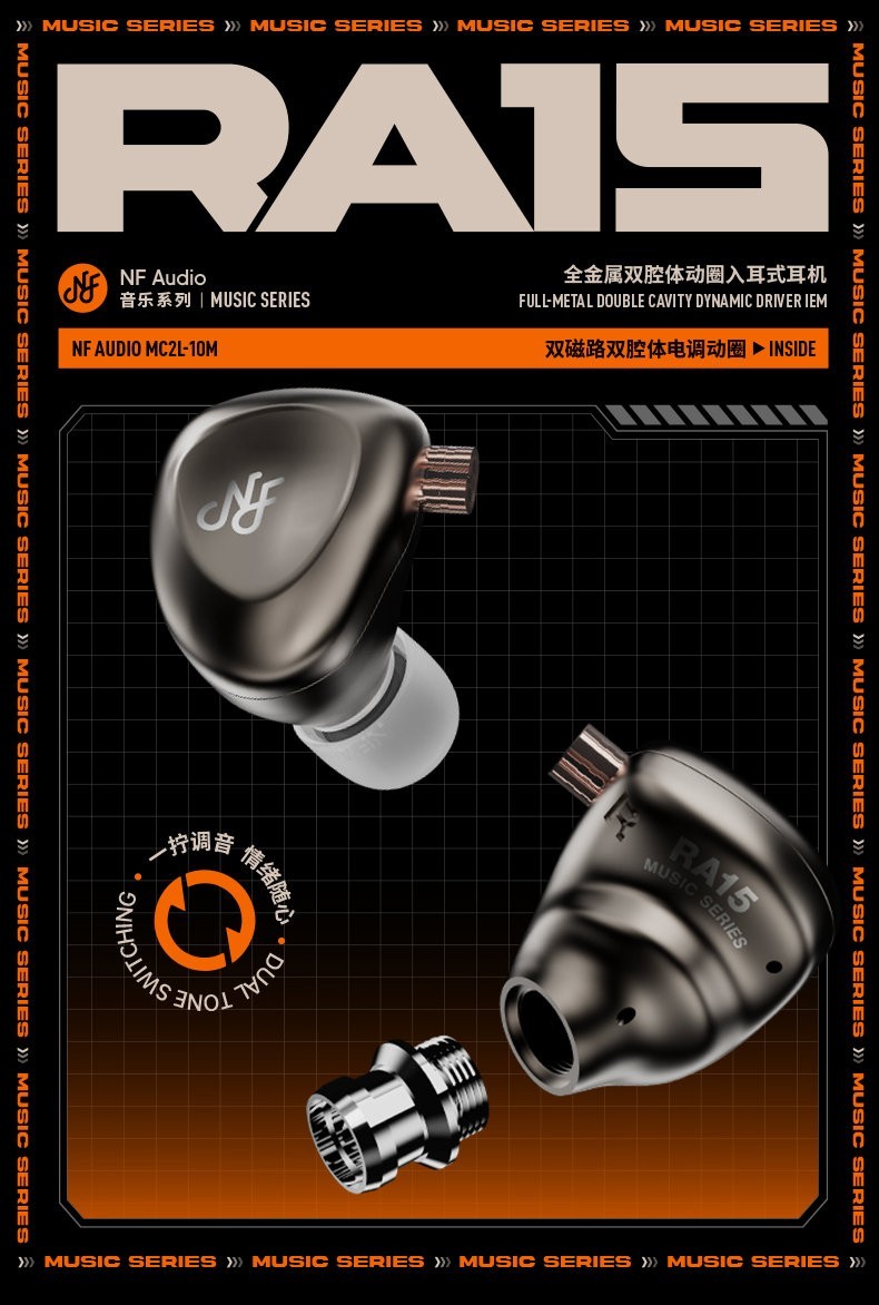 据介绍,RA15采用全金属腔体与可拆卸式音管设计,用户可以根据个人喜好更换不锈钢或黄铜两种音管材质。黄铜音管能带来更细腻的中频谐波和克制的中高频表现,使整个音色更加复古温暖;而不锈钢音管则强调动态瞬态和丰富的高频谐波,并拥有饱满的人声和低频氛围感。此外,这款耳机还搭载了专为音乐欣赏优化的宁梵MC2L-10M双磁路双腔体电调动圈单元。