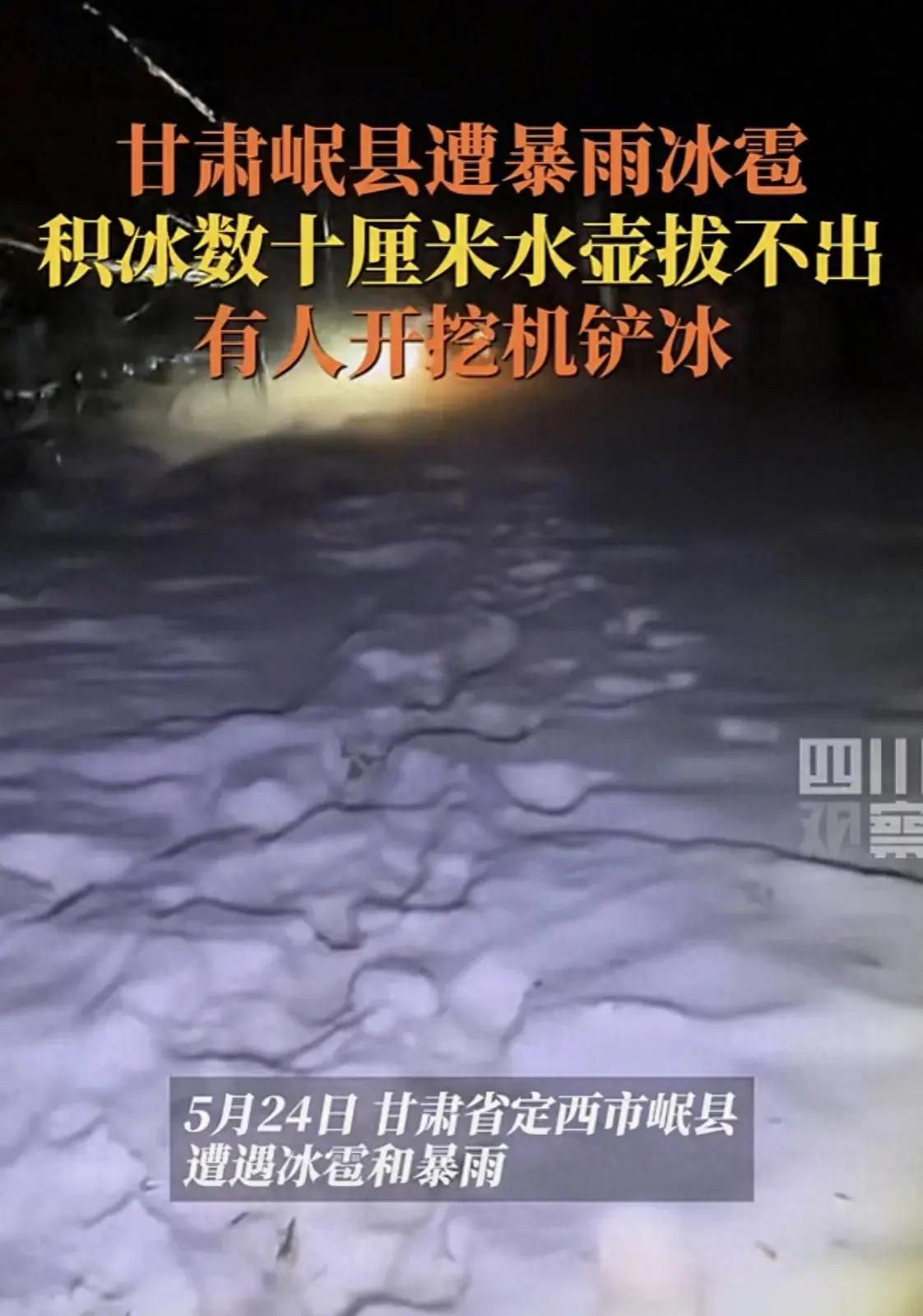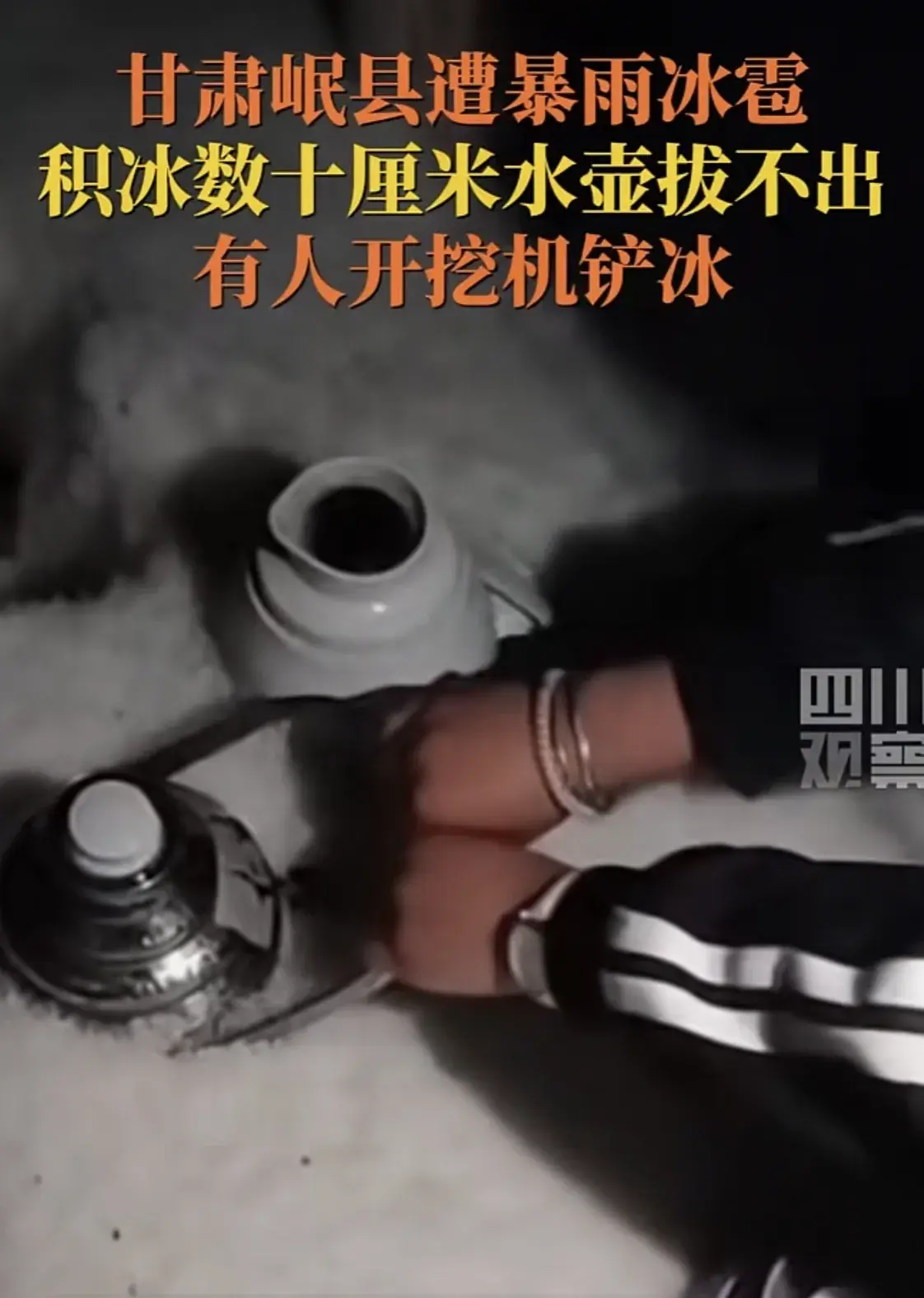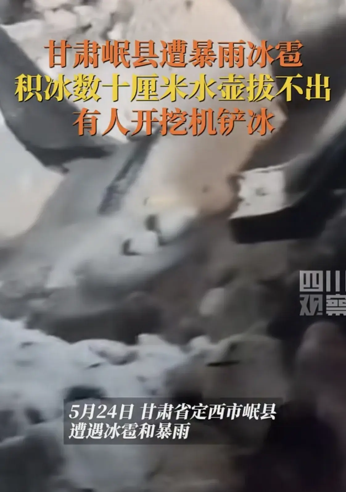 遭遇冰雹暴雨,甘肃岷县街面成冰河,室外保温瓶被冰封拔不出!
