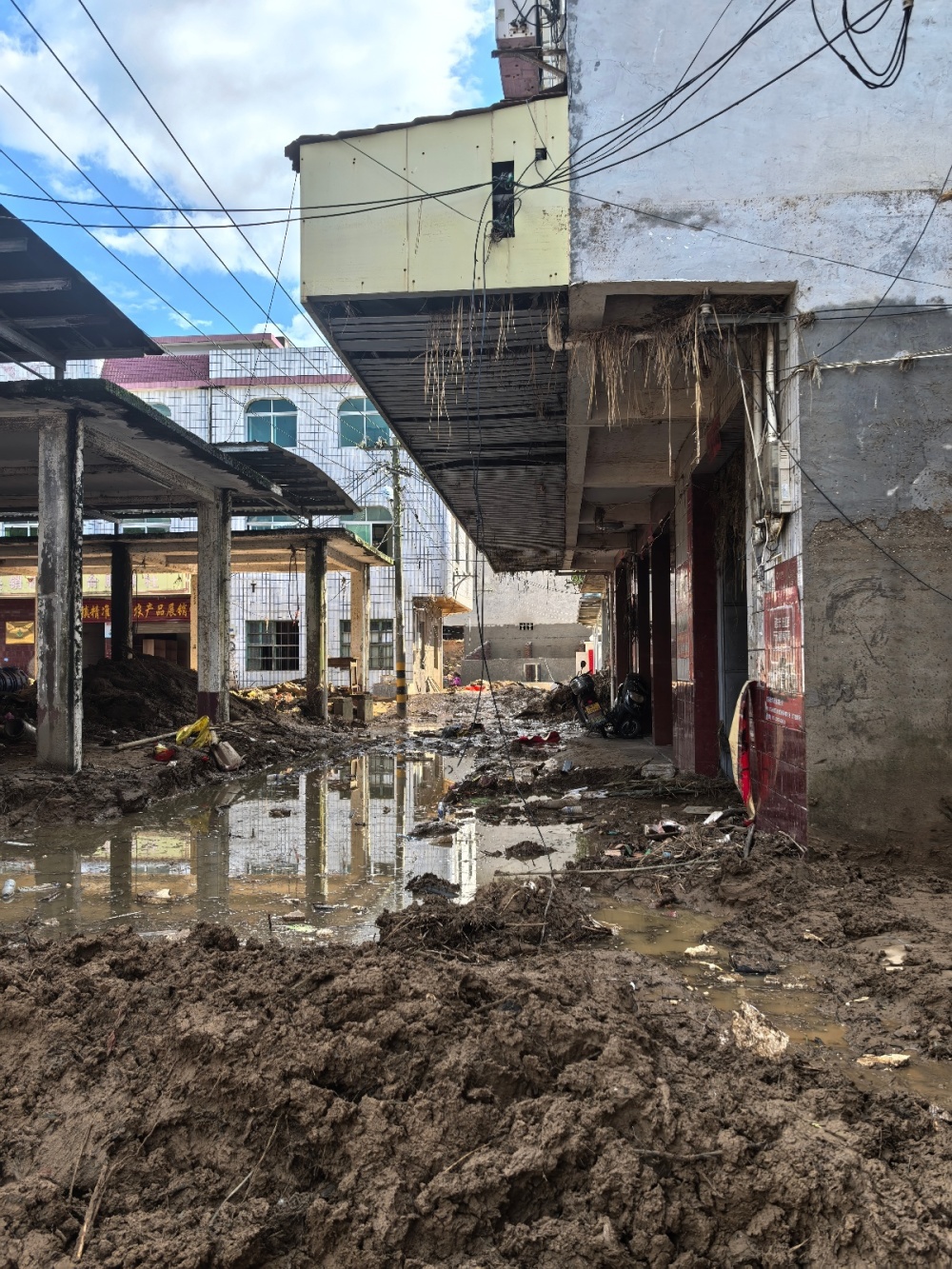 暴雨过后,太拔镇街道上满是淤泥。图/九派新闻 杨冰钰