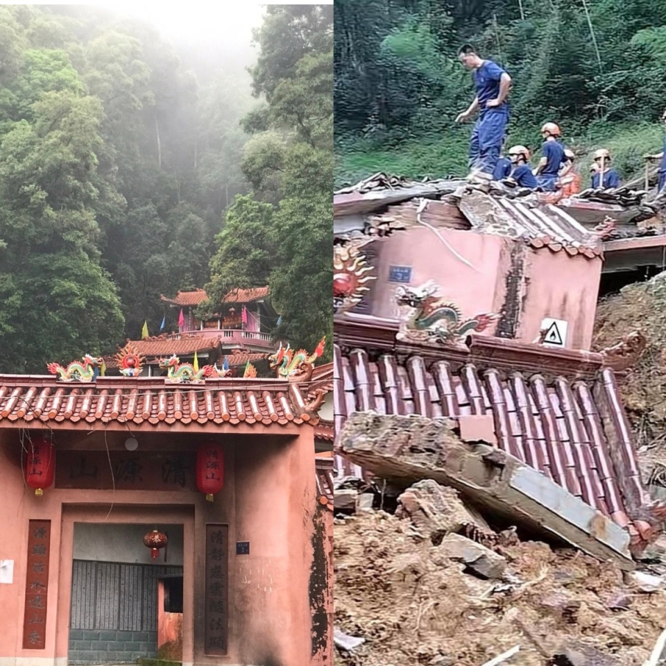 据上杭融媒,6月16日6时以来,上杭县遭遇连续强降雨,境内多个乡镇出现百年难遇的汛情,防洪形势严峻。红星新闻报道,16日晚,受连日强降雨影响,太拔村北面的清源山发生山体滑坡,一座有数百年历史的寺庙倒塌,一家六口被埋失联。事发时,6人是为躲雨进庙内避险。