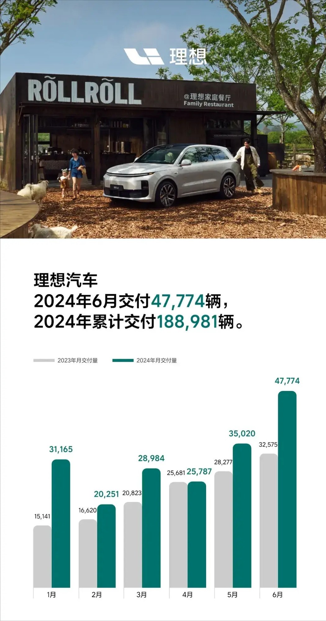理想汽车于2024年7月1日公布了其在2024年6月的交付数据。该公司成功交付了47,774辆新车,相较于去年同期增长了46.7%。同时,该公司在2024年第二季度共交付了108,581辆新车,同比增长率为25.5%。截至2024年6月30日,理想汽车已经累计向用户交付了822,345辆新车。