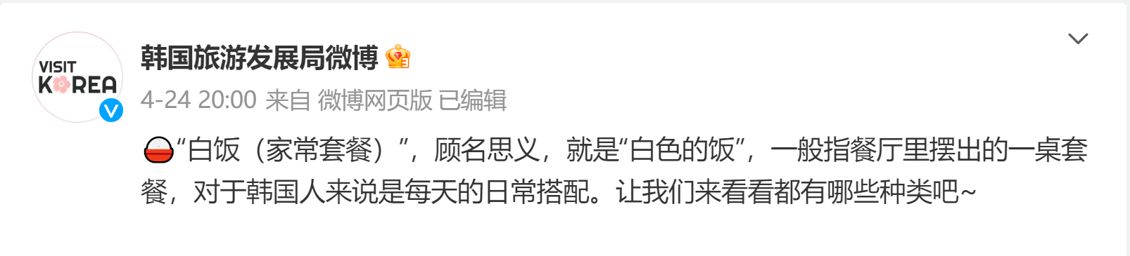 下图就是韩国国家旅游发展局为了证明大韩家常套餐多么丰盛,在中文官方社交账号上发出的图片。