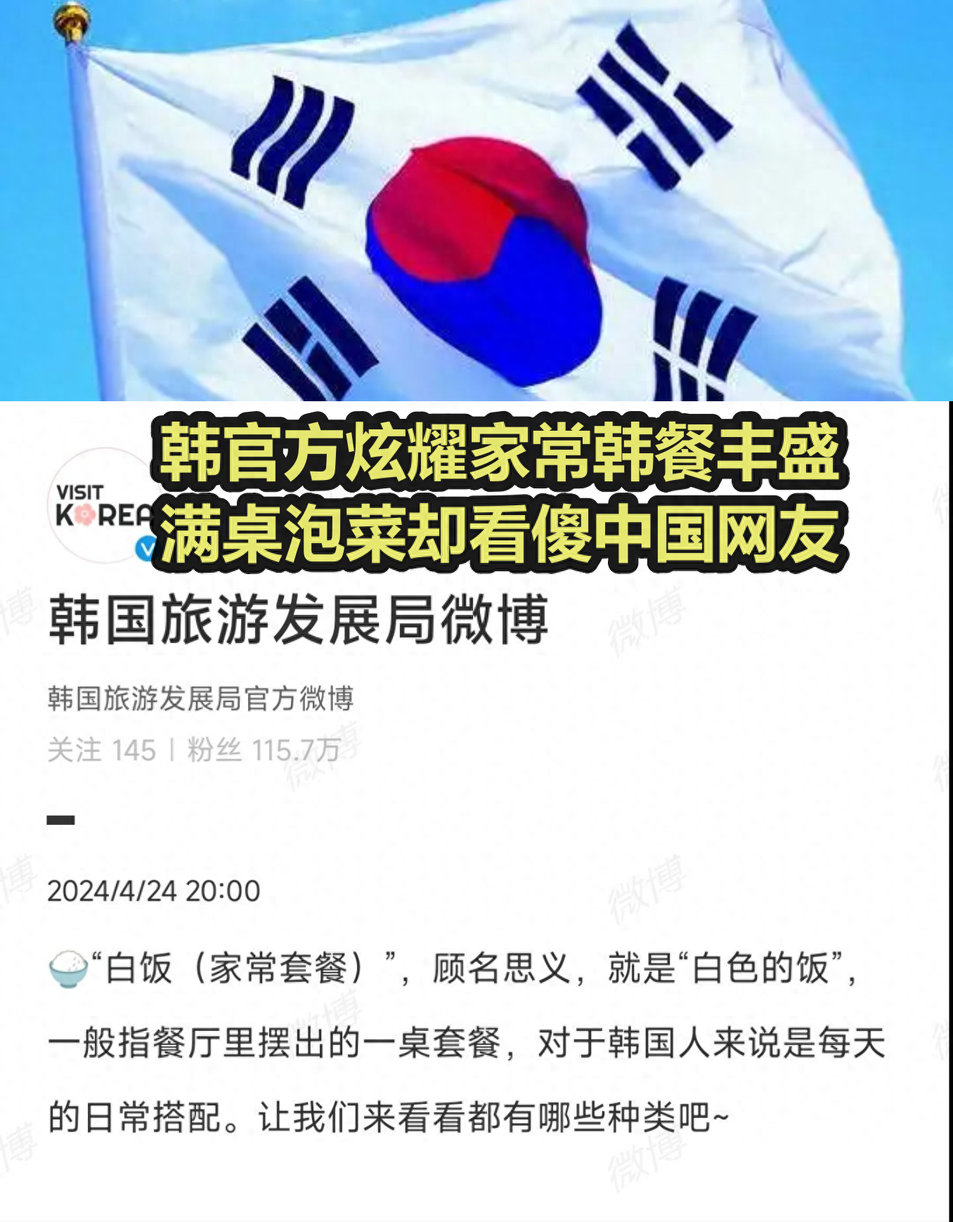 一、曾炮制“满汉全席是传统韩餐”的韩国旅游局,再次在中国网络吹嘘:大韩家常套餐太丰盛