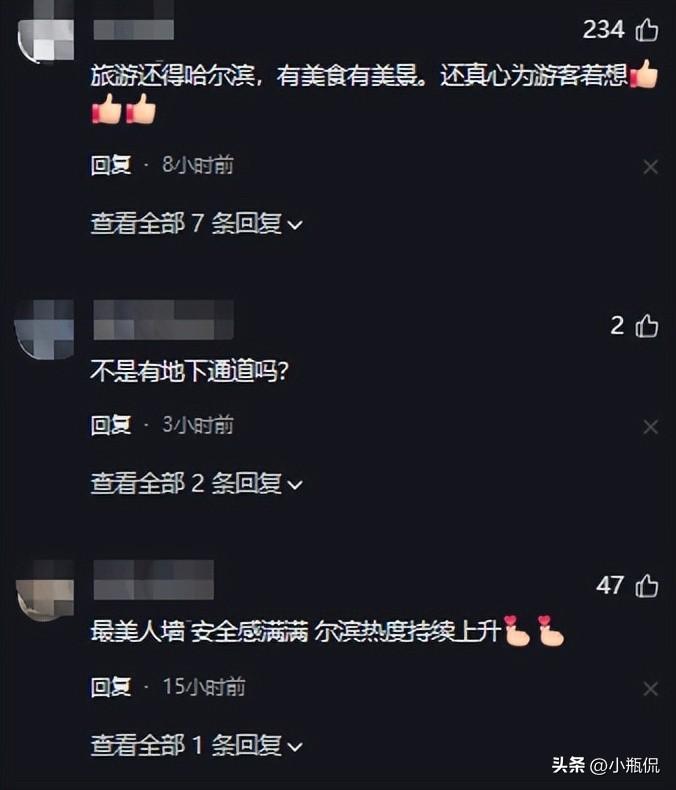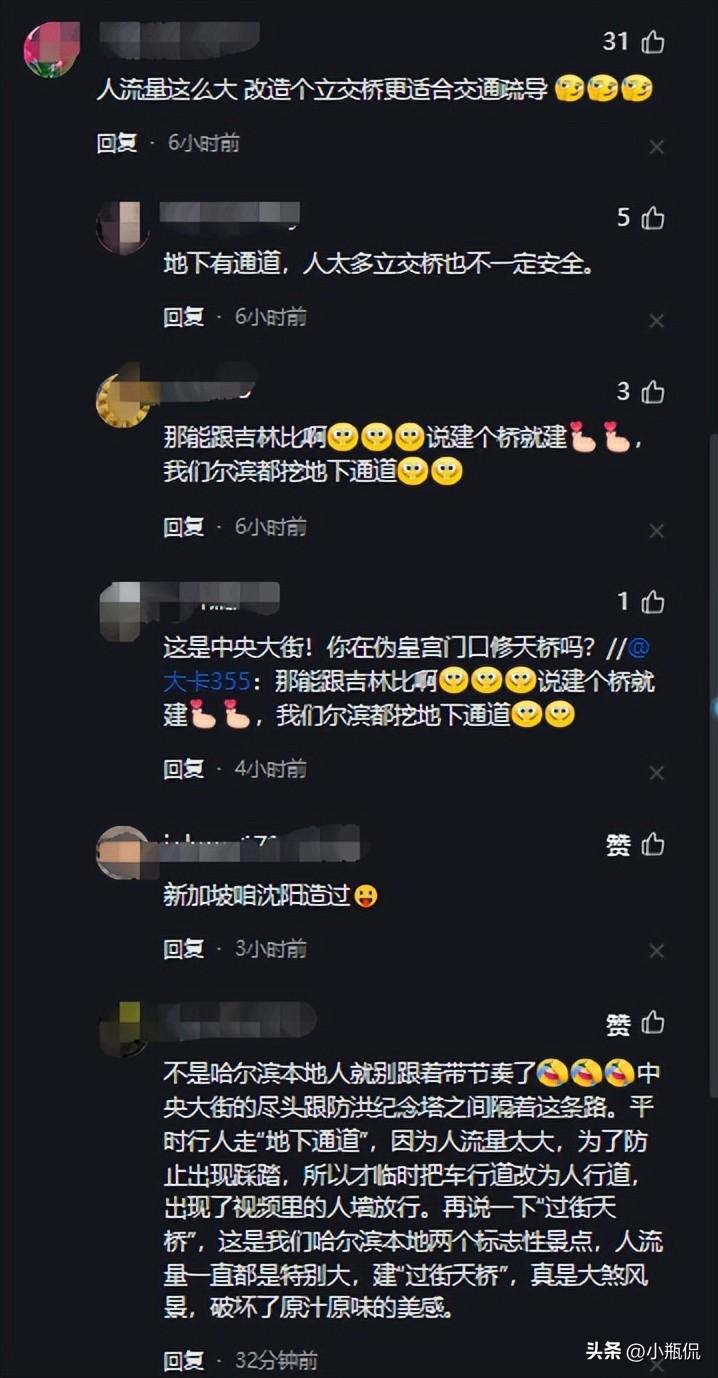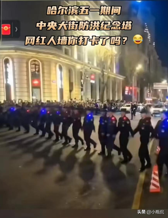 毕竟,对于外地游客而言,中央大街上原本就没有红绿灯可以指引过街,只能依赖地下通道。而在这个节日高峰,人流如织的情况下,恐怕地下通道也将无法顺畅通行。因此,开设人工"斑马线",确实是一种权宜之计。