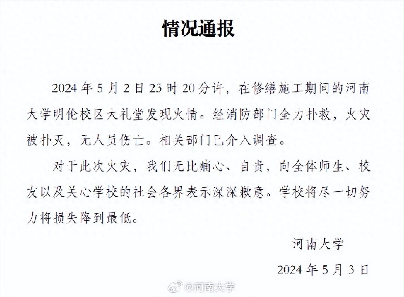 河南大学官方微博发布情况通报,全文如下: