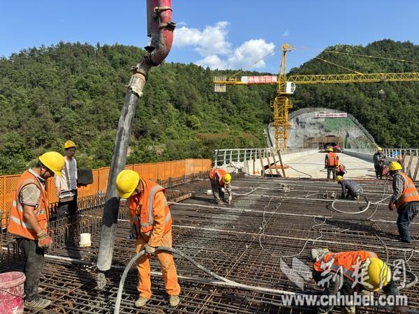 西十高铁田二沟与汉江大道大桥浇筑最后一板混凝土。