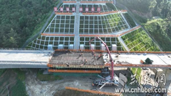 西十高铁是福(州)银(川)高铁武汉至西安高铁重要组成部分,新建正线全长255.76公里,湖北省境内86.36公里,陕西省境内169.4公里,设计时速350公里。其中,二田沟与跨汉江大道特大桥是由跨汉江大道大桥和二田沟大桥两座大桥组合成的一座大桥。