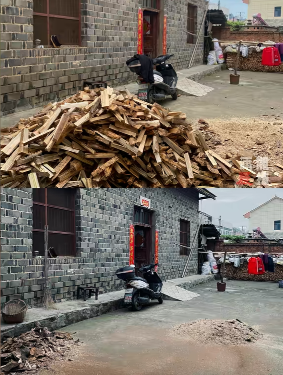 劈柴或许还有点技术含量,需要熟能生巧,才能达到快、准、狠的效果,事半功倍。那么搬柴火,就是妥妥的体力活了,还好薛同学回来了,要是他父亲一个人,真的不知道多少天才能弄完。
