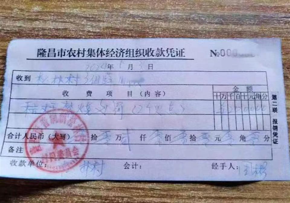 另一张《隆昌市农村集体经济组织收款凭证》显示,松林村3组薛姓村民焚烧秸秆处罚2000元,收款单位为松林村并盖有公章,时间也为5月3日。同一件事情,为何镇里告知和村里收取的罚金不同?网友质疑为“阴阳罚单”。