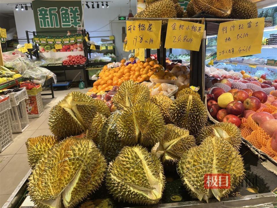 北京市丰台区一家水果店老板告诉记者,品质好的金枕榴莲刚上市不久,每斤39.9元左右,价格比较稳定,“今年榴莲量大,和去年对比的话,价格确实便宜了不少。”