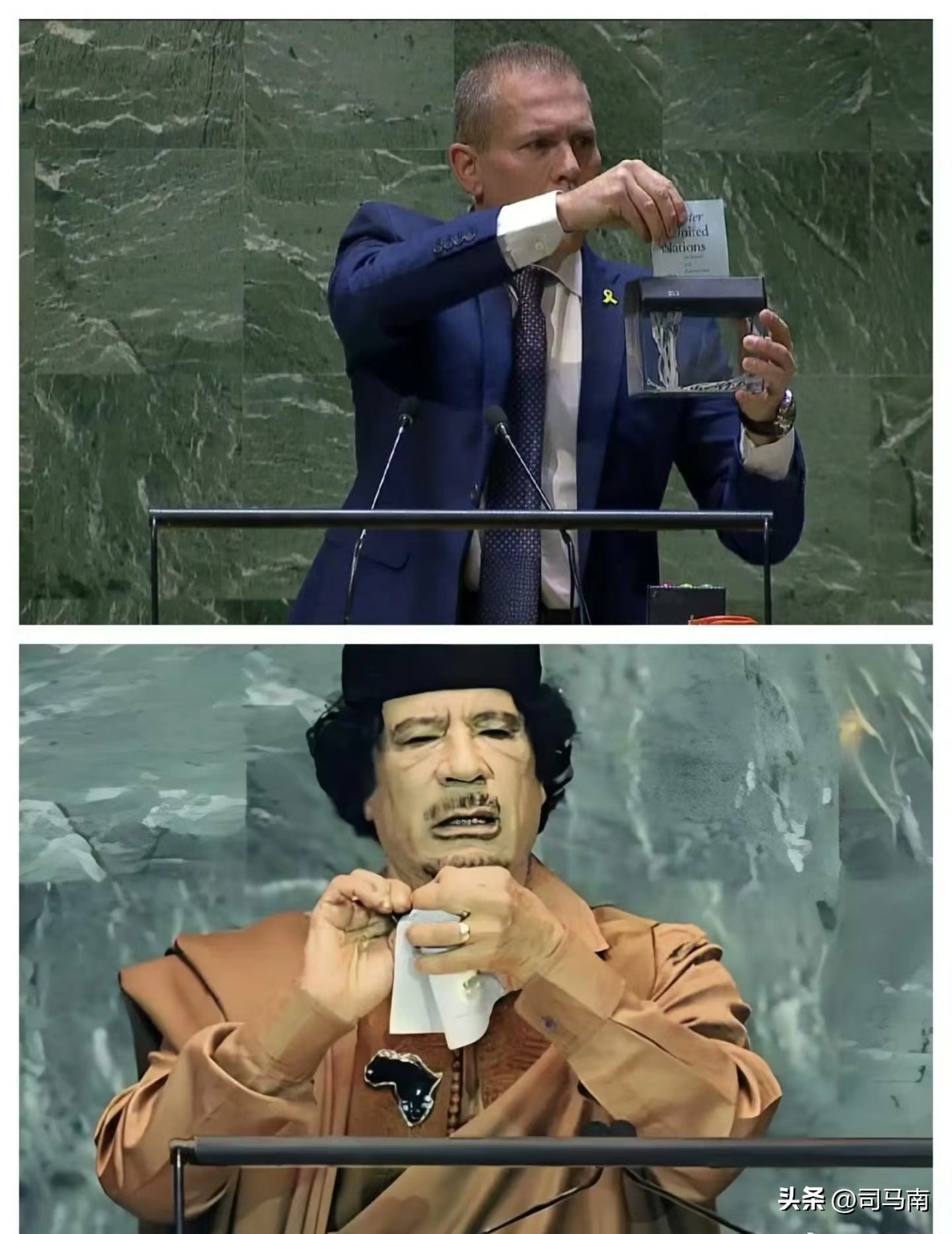 上一次联合国安理会开会,15个成员国投票,13票通过,其中英国弃权,美国投了否决票。这次是联大决议,是全世界所有的联合国成员国投票,决议确认了巴勒斯坦符合联合国会员国资格。以色列常驻联合国代表现在玩得这出儿是行为艺术,只不过是无耻的行为艺术。