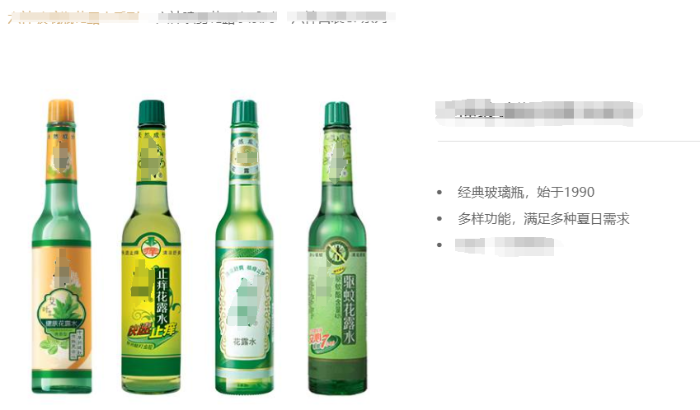 同时,记者注意到,在同品牌花露水中,带有“花香”、“清凉”、“喷雾”等字样的款式价格比玻璃瓶装稍贵一些,其中也有一些花露水瓶上印有婴幼儿专用等字样,而这类款式价格要更高一些。