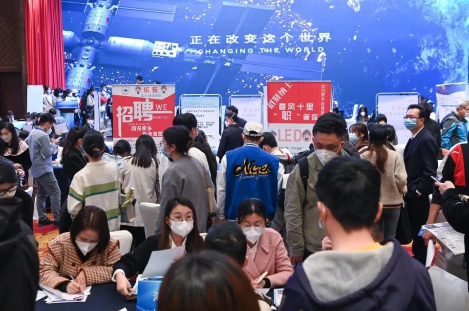 ▲?2023年1月,海口,“回归家乡·投身自贸港”春节返乡人才对接会现场人山人海。图 / 视觉中国