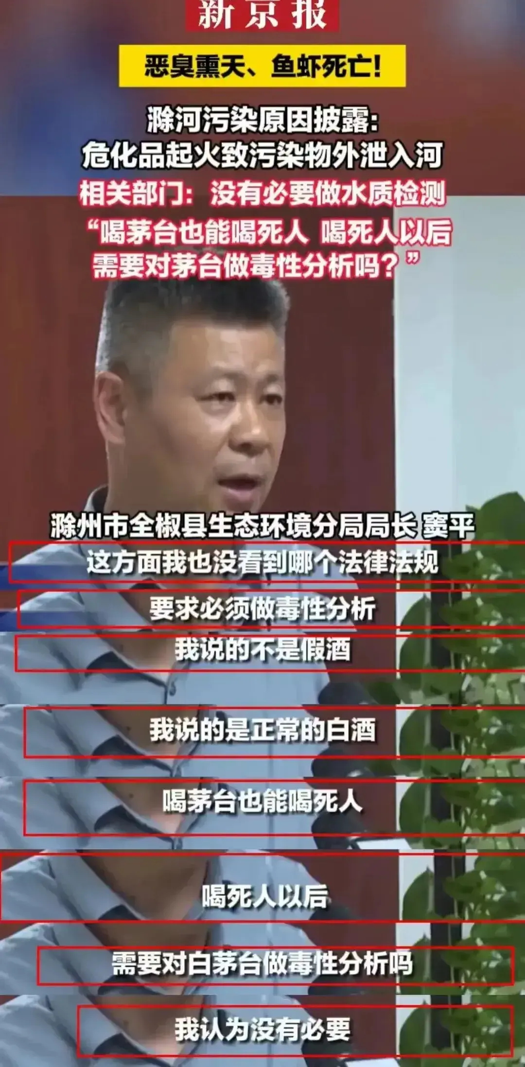这场风波的起因,是全椒县环保局局长窦平的言论。他为了淡化水质检测的必要性,不恰当地拿喝茅台酒作比喻。这个看似无害的比喻,无意中打开了反对的旗帜,让窦平陷入了舆论的漩涡。他的言论不仅让原本就愤怒的民众火上浇油,也让他成为政府官员中消极、否认的典型。