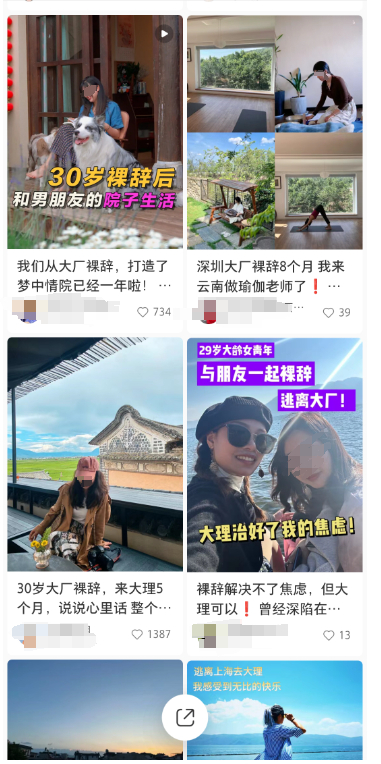 ▲小红书上的大厂离职来大理内容分享