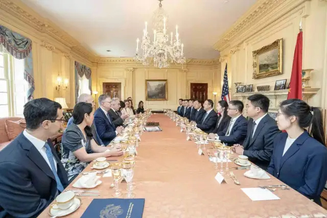 当地时间5月30日上午,马朝旭在华盛顿同美国常务副国务卿坎贝尔举行磋商,双方围绕中美关系和共同关心的国际地区问题坦诚、深入交换意见。会谈是建设性的。