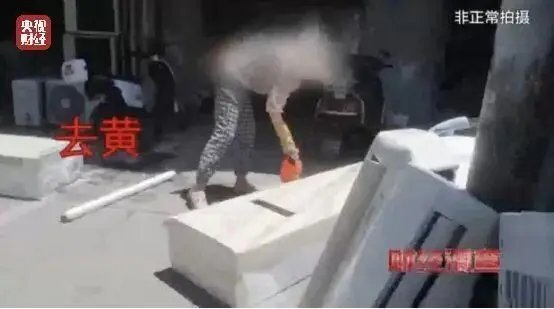 记者也了解到,十几年甚至二十年前生产的空调,大多采用聚丙烯材料作为外壳。这种塑料材质在长期使用过程中,会因紫外线照射、高温、氧化等因素逐渐变黄。把发黄的老旧机器,通过清洗后“漂”白,就是商家所谓的“翻新机”。
