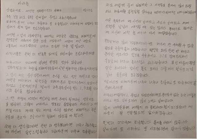 图为“密阳性暴力事件”涉案嫌疑人之一A某道歉的亲笔信 图源:韩媒报道配图