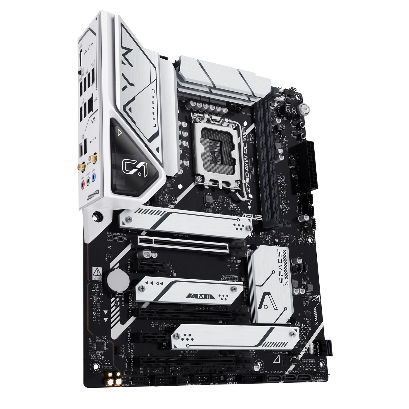 华硕Z790-AYWOCWIFI主板早在台北电脑展首秀时就展示出非凡的超频能力,内存频率达到DDR5-11150MHz。该主板采用特制的2DIMM插槽设计,并在前置面板配备了电源、重置、一键清除BIOS等专业超频按钮,助力玩家发挥DDR5内存最大潜能。同时拥有超高颜值,外观延续AYW系列经典SPACE太空元素,配合大面积银白色散热装甲,呈现满满未来科技感。