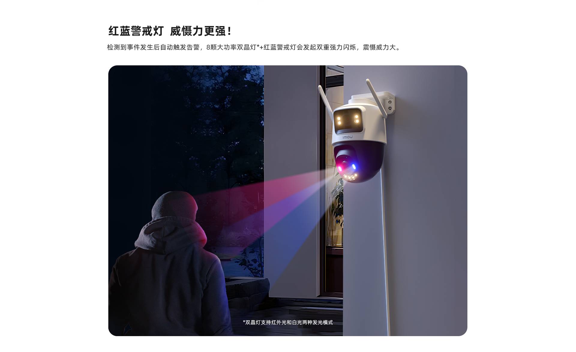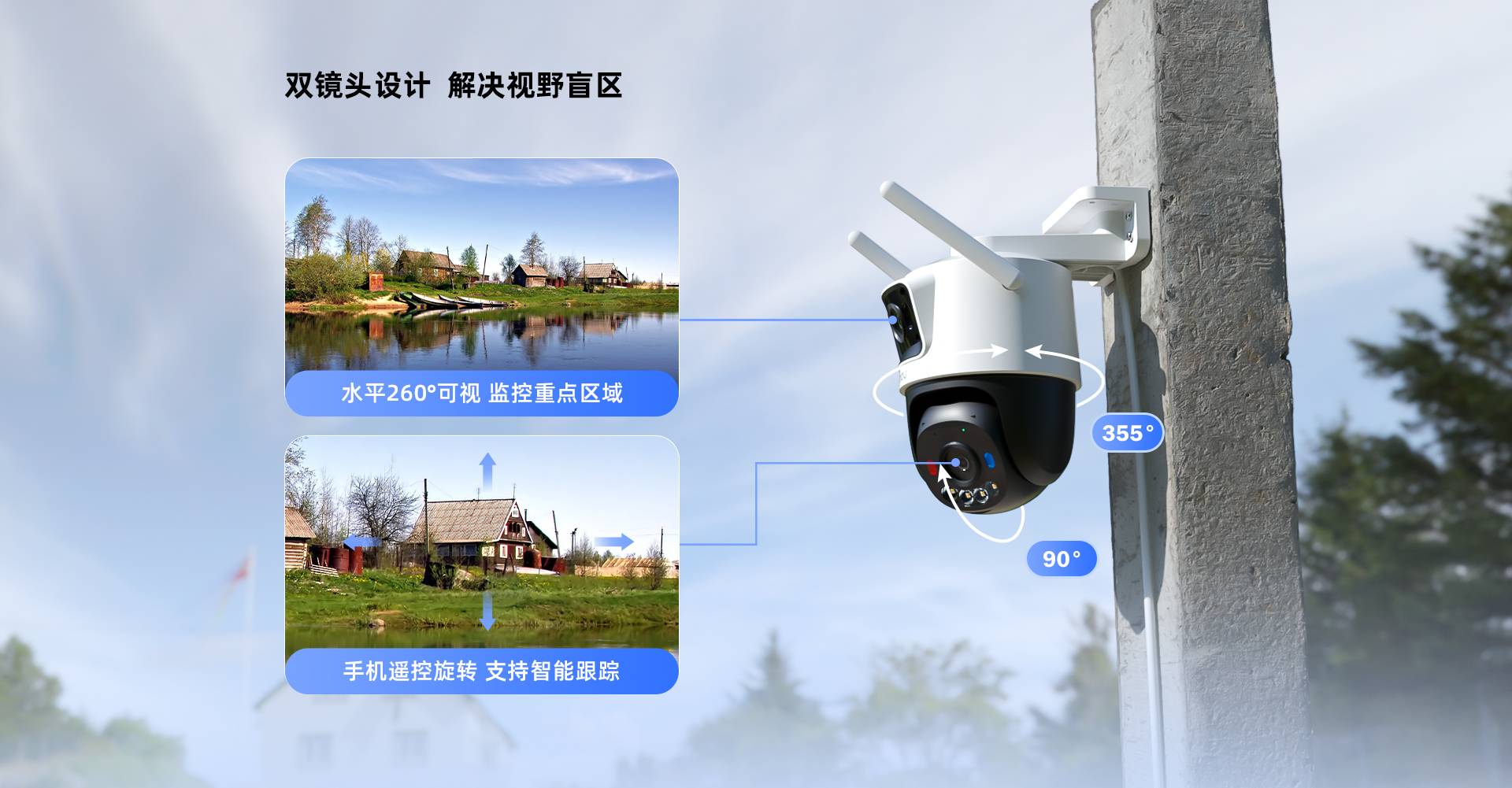 随着人们对生活和商业环境安全防范意识的提升,传统的单目球机难满足用户对于监控大场景、视野的需求,同时对一些户外应用场景而言,实现全WiFi覆盖难度也较大。针对以上问题,智能家居品牌乐橙全新推出首款双目4G球机TS7C,它以双镜头双画面、内置SIM卡、新增红蓝警戒灯等亮点设计,再次刷新了安防设备的高度。这款产品的核心升级点不仅继承了双目球机可同时监控两个角度的优势,还能轻松适配果园、鱼塘等无WIFI环境,无需网络就能使用监控,为用户的安全守护提供了更为坚实的保障。