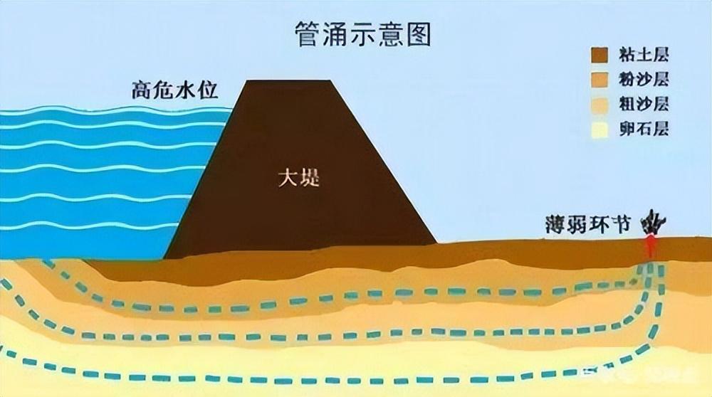 管涌,又称潜蚀、流土,是堤防工程常见的险情之一。在汛期高水位情况下,堤防背水侧容易发生“流土”和“潜蚀”两种险情,这种现象在湖南一般被称为“翻沙鼓水”。管涌的产生主要是由于以下原因: