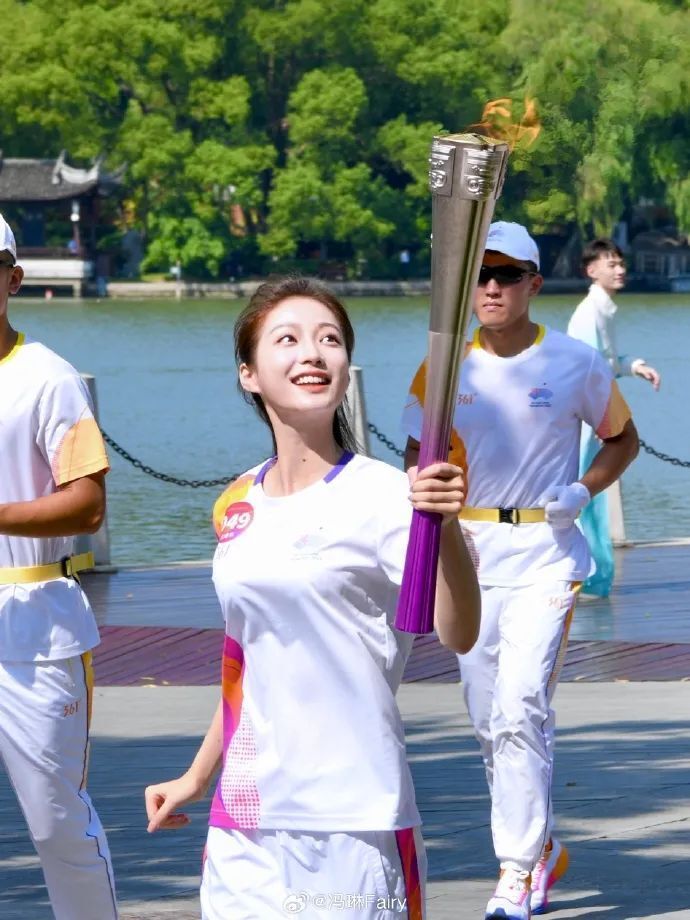 去年,她作为火炬手参与了杭州亚运会火炬的传递。