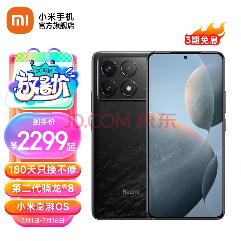 小米Redmi 红米K70手机5g 第二代骁龙8 2K高光屏 光影猎人800传感器 120W快充 墨羽黑 12GB+256GB