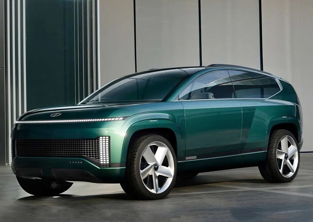 根据2021年发布的IONIQ SEVEN概念车,新车的设计风格应该会延续下来。它的前脸将会配备像素化LED灯组,前舱盖设计圆润流畅,以降低风阻效果。车身侧面可以看出该车类似SUV和MPV跨界设计的特点,这种设计可以有效地提升车内空间。尾部设计相对简约,在环绕式像素化尾灯的衬托下,与车头形成更加夸张的视觉效果。
