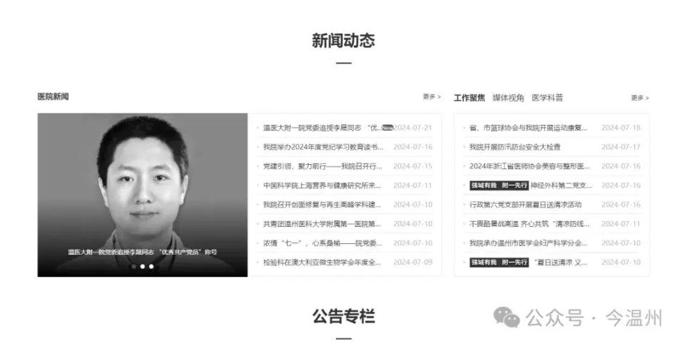 据温州医科大学附属第一医院官网:7月21日,中共温州医科大学第一临床医学院(信息与工程学院)、附属第一医院党委决定,追授李晟同志“优秀共产党员”称号。查询显示,温医大附一院官网首页已变灰,悼念李晟医生。