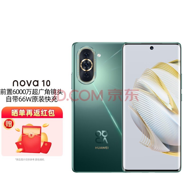 华为 HUAWEI nova 10 全网通4G手机 8GB+128GB 绮境森林 标配66W华为超级快充