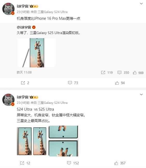 此外,@i冰宇宙还进行了Galaxy S25 Ultra与iPhone 16 Pro Max的渲染图对比,并指出S25 Ultra机身厚度比后者更薄,边框也更加窄。值得一提的是,Galaxy S25 Ultra在细节处理上也表现出色。其边角设计圆润流畅,有效避免了以往手机边缘硌手问题,为用户提供长时间握持使用的便利。