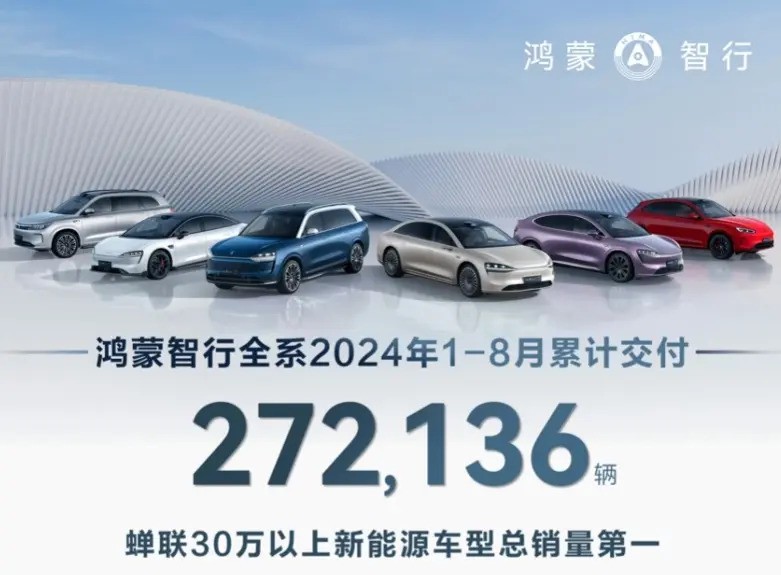 鸿蒙智行近日公布了其8月份的交付数据。该公司在该月份共计交付新车33,699台,而今年1-8月的累计交付量达到了272,136辆。