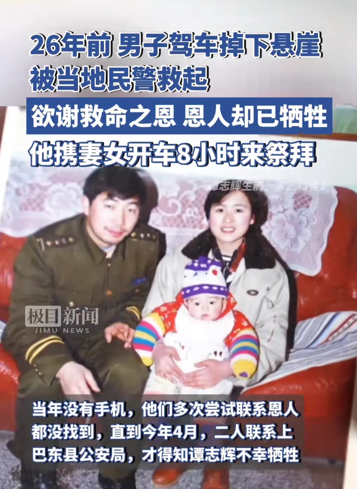这是一个至今仍令人动容的故事。26年前,一位男子在驾车途中失控,车辆坠入悬崖,陷入绝境。幸运的是,当时正在执勤的当地民警发现了这一惨剧,毫不犹豫地冲下悬崖,将男子救了上来。
