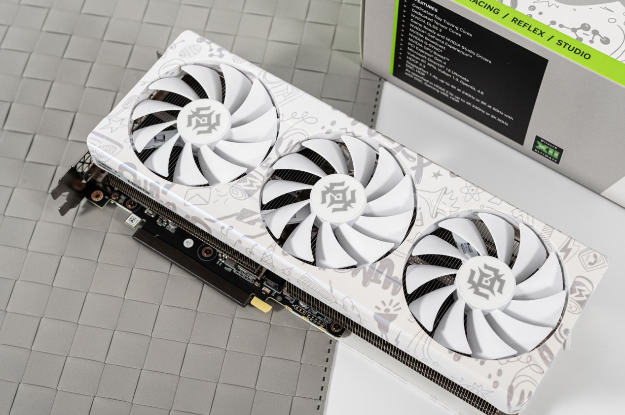 索泰GeForce RTX 4070 SUPER X-GAMING OC欧泊白拥有三具大尺寸暗影疾风扇叶,能带来更高风压和更大风量,搭配卡身大面积镂空风道,可实现高效畅顺散热。纯白卡身加上涂鸦印纹的外观,辨识度很高。整体设计迎合了年轻玩家对于个性的追求,是现阶段DIY装机一个不可多得的卓越之选。