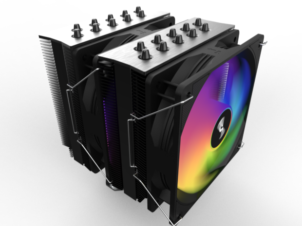 快睿近日推出了一款整体设计相对主流的十热管风冷散热器TE10。这款散热器采用双塔双风扇和铜底配置,高度为152mm,搭载了两颗12025规格的ARGB风扇,并配备了常见的U型六毫米热管。