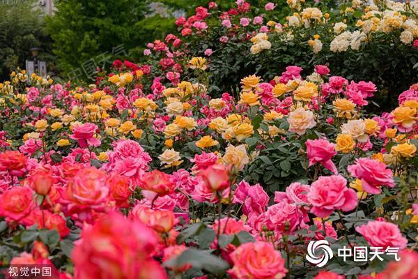 2021年4月25日,郑州月季公园各色月季争奇斗艳。
