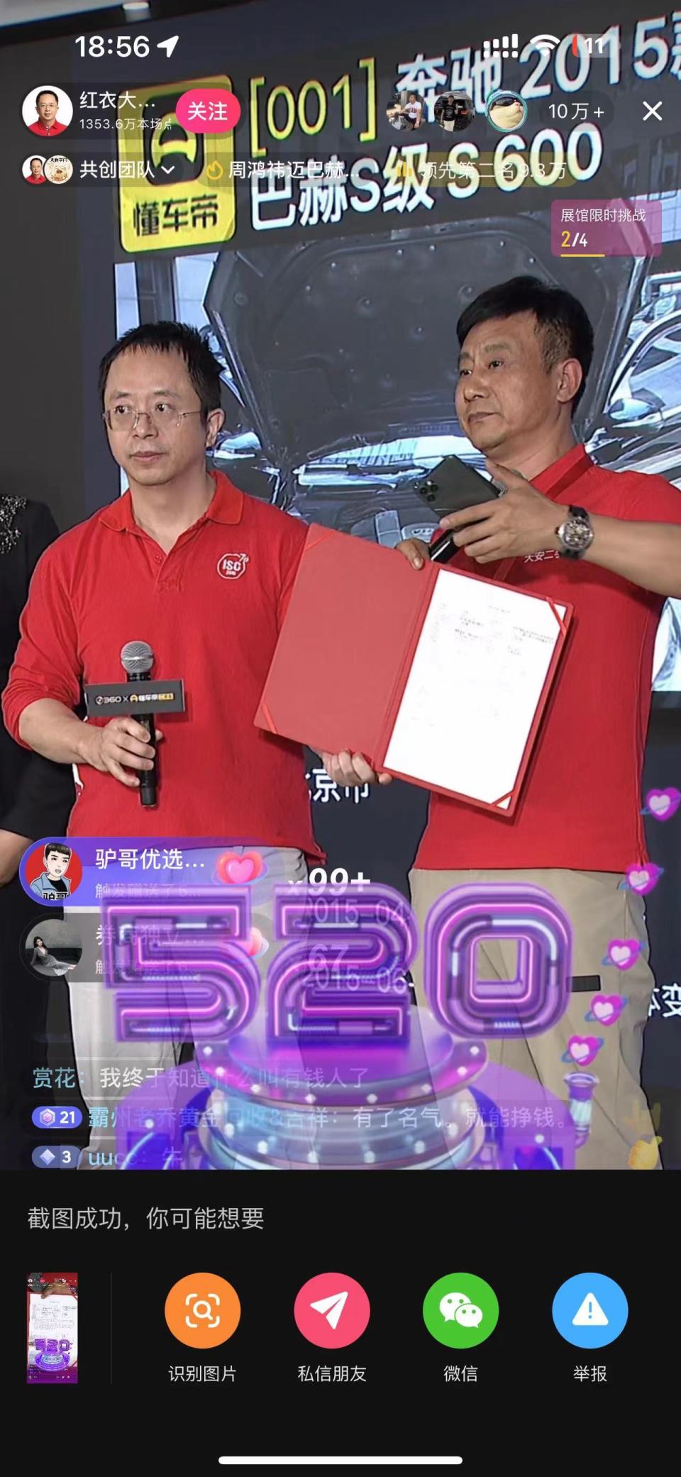转载:https://new.qq.com/rain/a/20240428A07V9000 2024-04-28 18:57·鞭牛士·发布于北京 鞭牛士 4月28日消息,今日下午六点,周鸿祎在360大厦举办线下拍卖会出售迈巴赫,600元起拍。最终以990万元出售,此次拍卖金额将全部捐赠给王选基金会。最终买下这辆车的车主,未来3年每年将获得一次与周鸿祎面对面交流的机会。