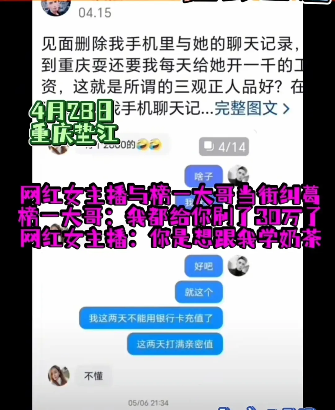 看了看网络流传的女主播和榜一大哥的聊天记录。