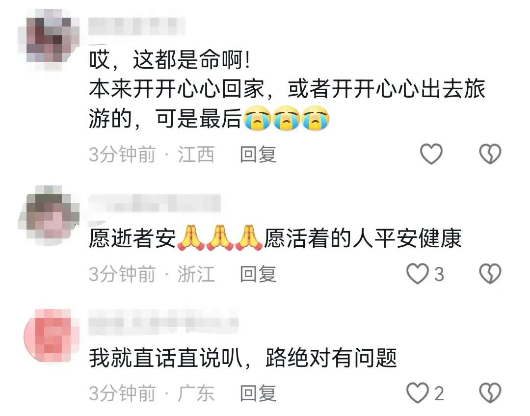 有网友表示,第一次离死亡那么近,眼泪止不住往下流。