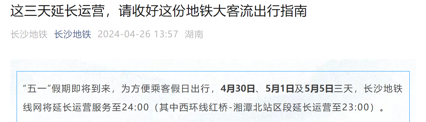 此外,为方便乘客假日出行,长沙公交、地铁也延长营运时间,增加旅游专线客运车辆;增加橘子洲头、“三馆一厅”码头游船接驳趟数,设立从车站到主要商圈、景区景点的假日旅游专线,优化橘子洲等重点地铁站点安检、出站、入站口设置。