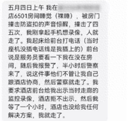 5月4日,#女子称住酒店裸睡被人强行刷开房门#冲上了热搜。