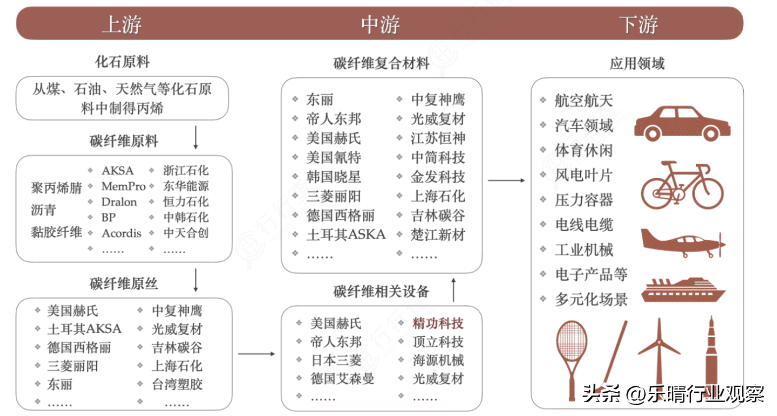 从产业链角度来看,碳纤维产业链包含了从原料提炼到最终成型的全过程。