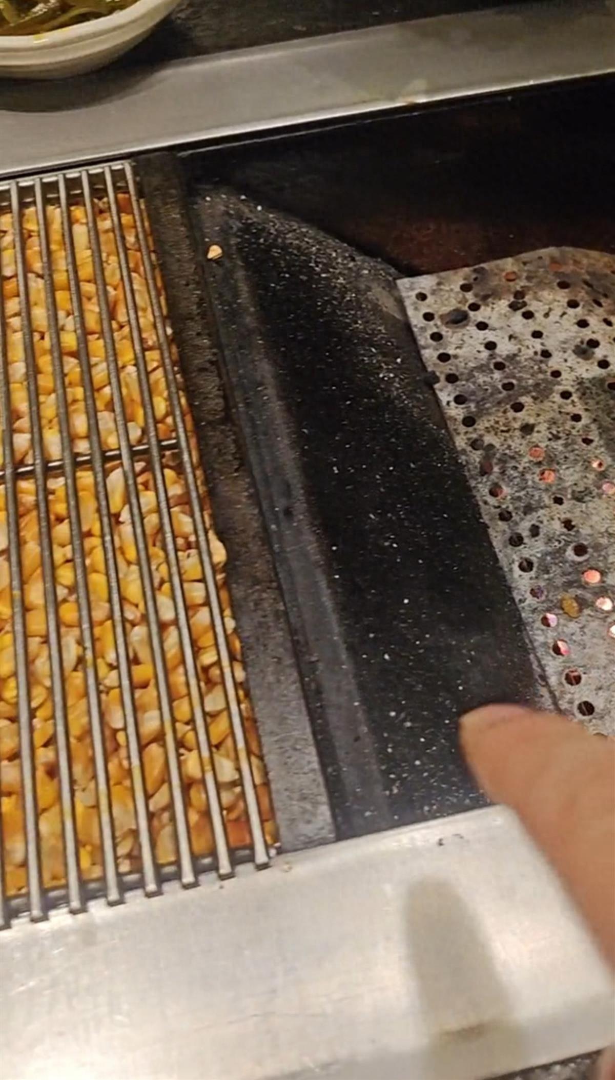 隋先生介绍,5月3日下午,他和家人去大连一家烤肉店吃饭,发现烤炉的一个槽子里放着不少玉米粒。起初他以为是利用烤炉的温度做爆米花,可问服务员才得知,这些玉米是用来做烤肉燃料的。