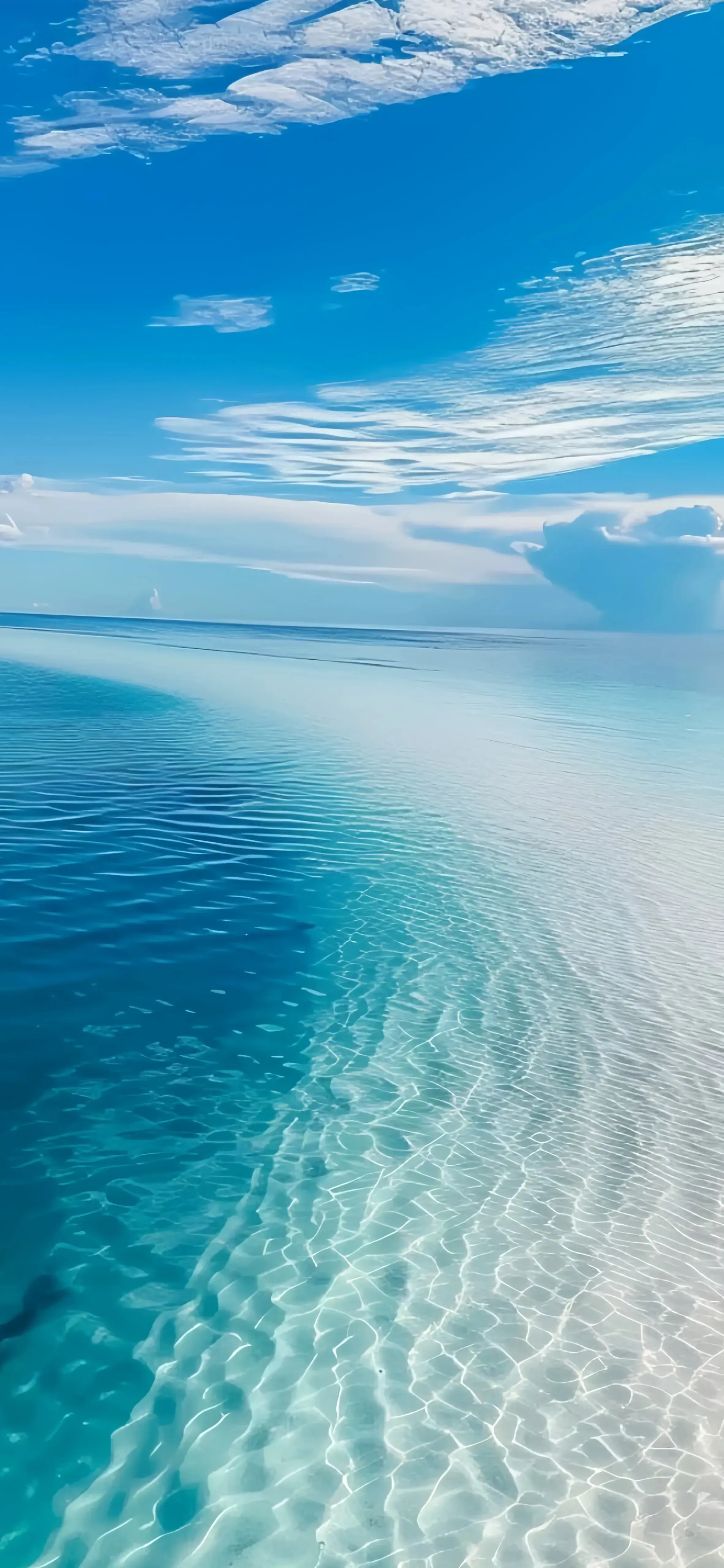 在这张手机壁纸上,海天一色的美景尽收眼底,给人一种宁静而壮观又通透的感觉。