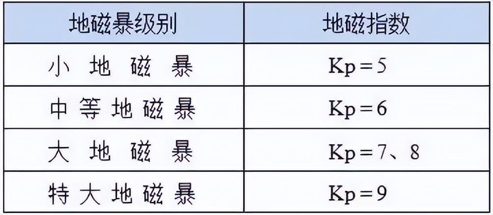 地磁暴可以分为以下几个级别:
