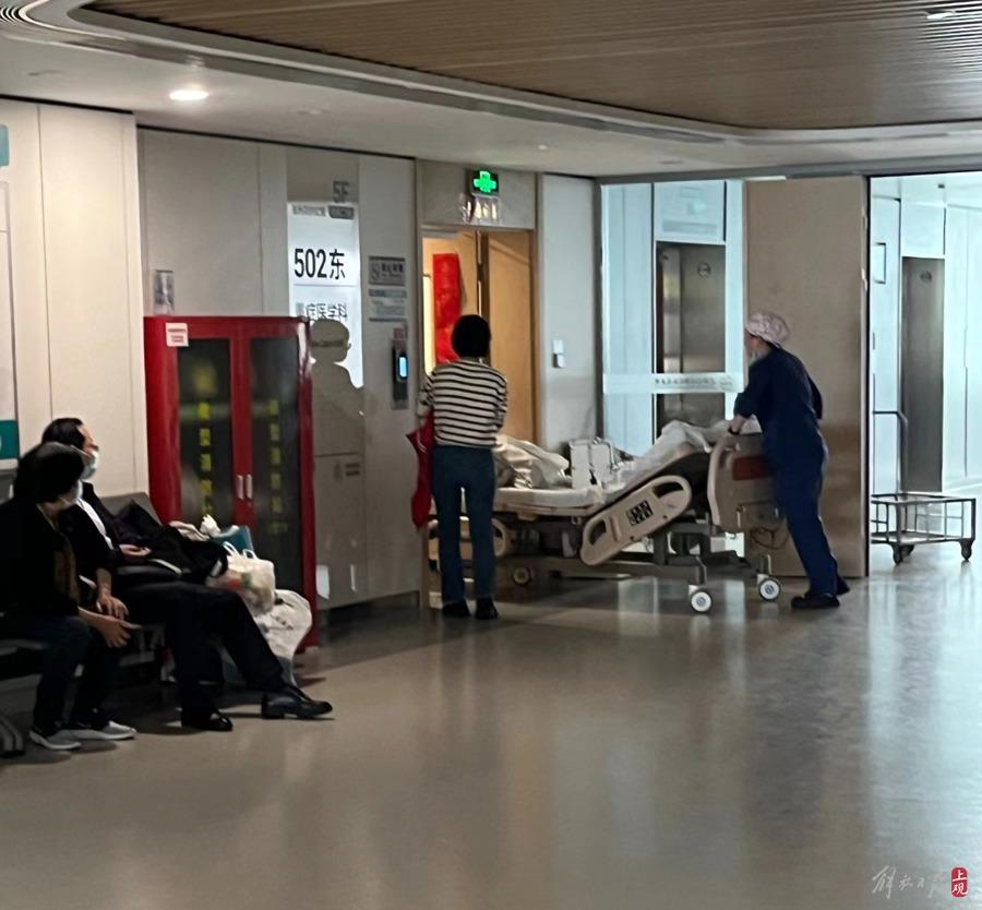 5月11日中午,南通第一人民医院(新院)住院二部重症区,受伤学生家属正在等待。 杨书源 摄