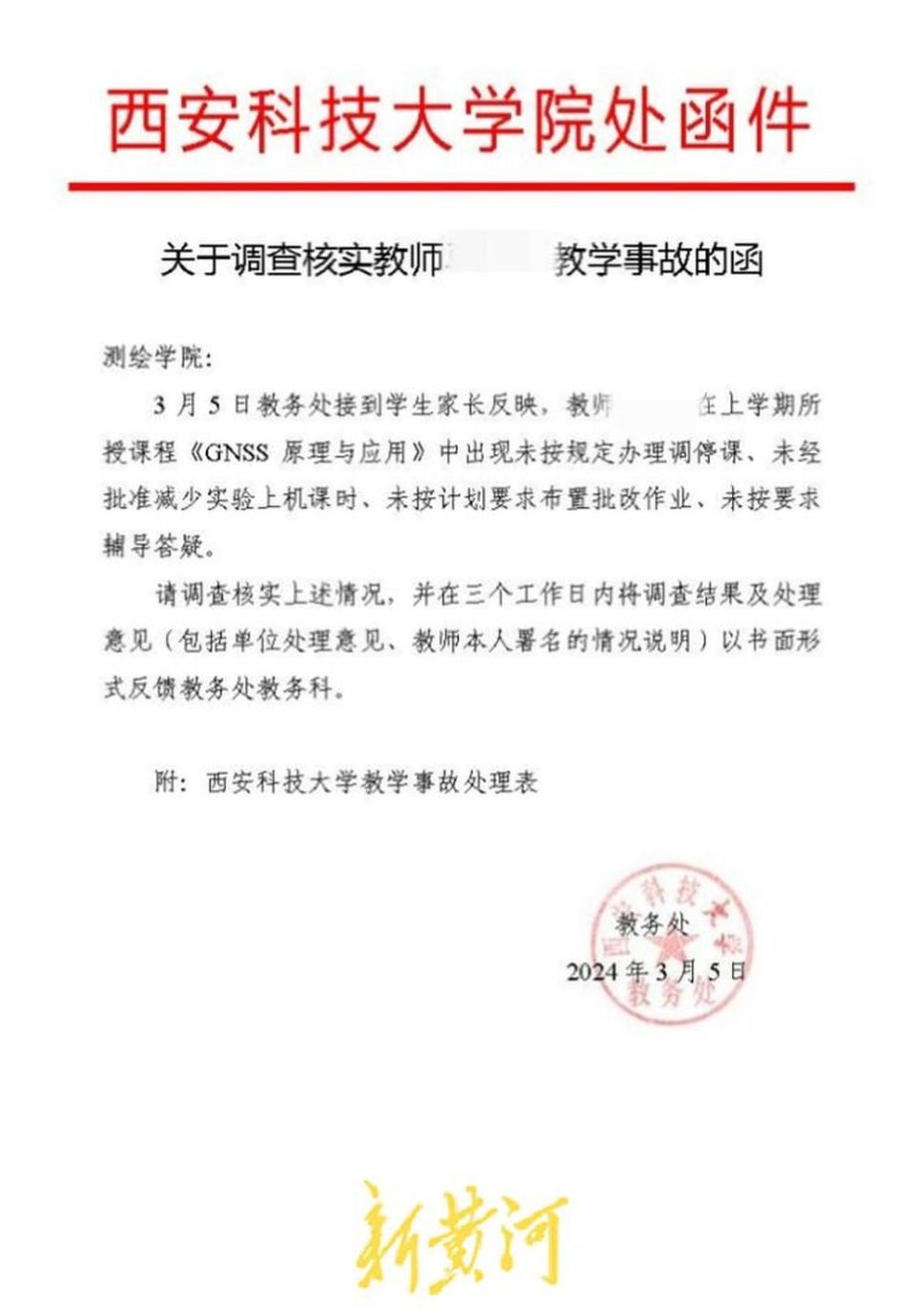 5月11日,新黄河记者就上述事件致电西安科技大学测绘科学与技术学院党委书记殷某某并发去采访短信,未获回复。