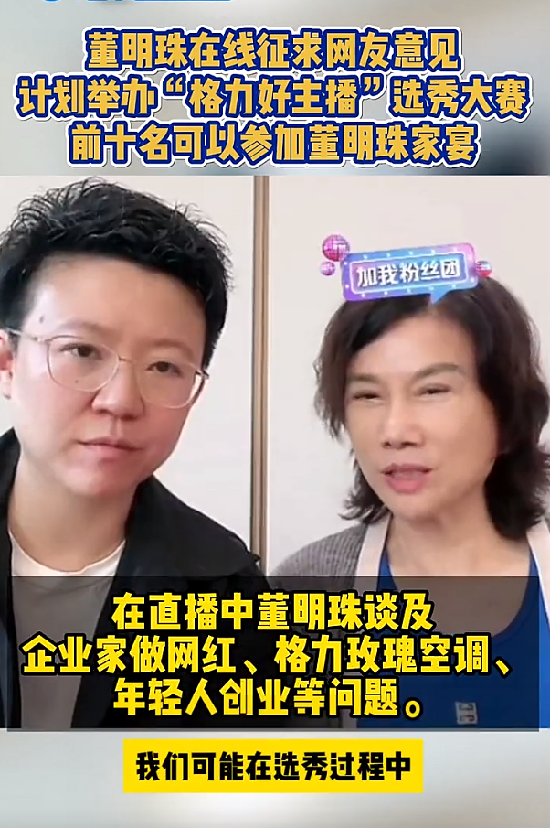 董明珠想在全国开展主播选秀。